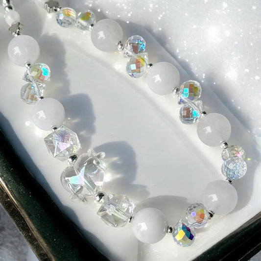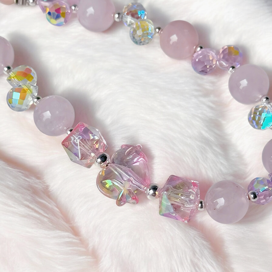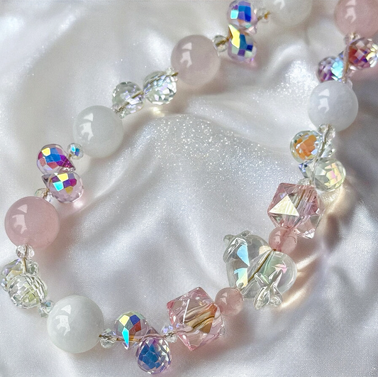Alice's Tea Party in Clear Aquamarine, Pink Snow Phantom Quartz, Rose Quartz & Yellow Chalcedony