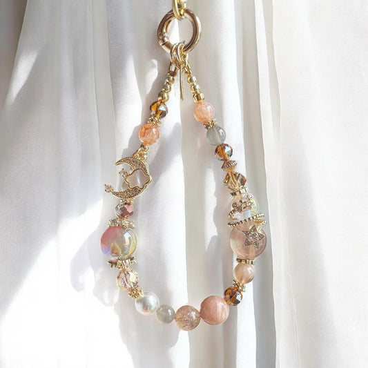 MoonBunny in White/Pink Rabbit Hair Rutile, Green Rutile, Green Chalcedony, Rose Quartz & Pink Lepidolite