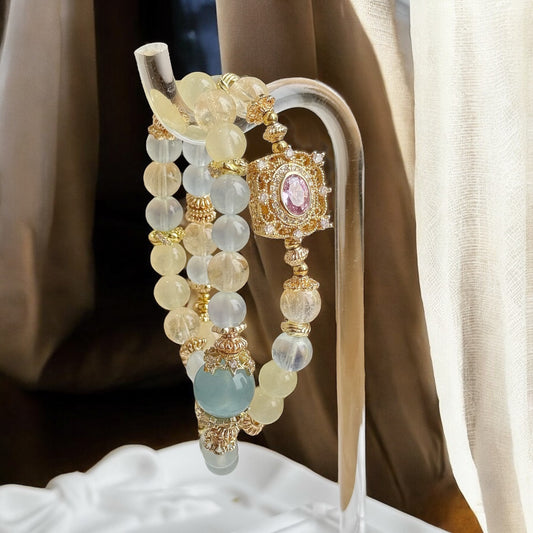ALICE in Aquamarine, Yellow Azeztulite & Yellow Chalcedony [Wrist:15-16cm]