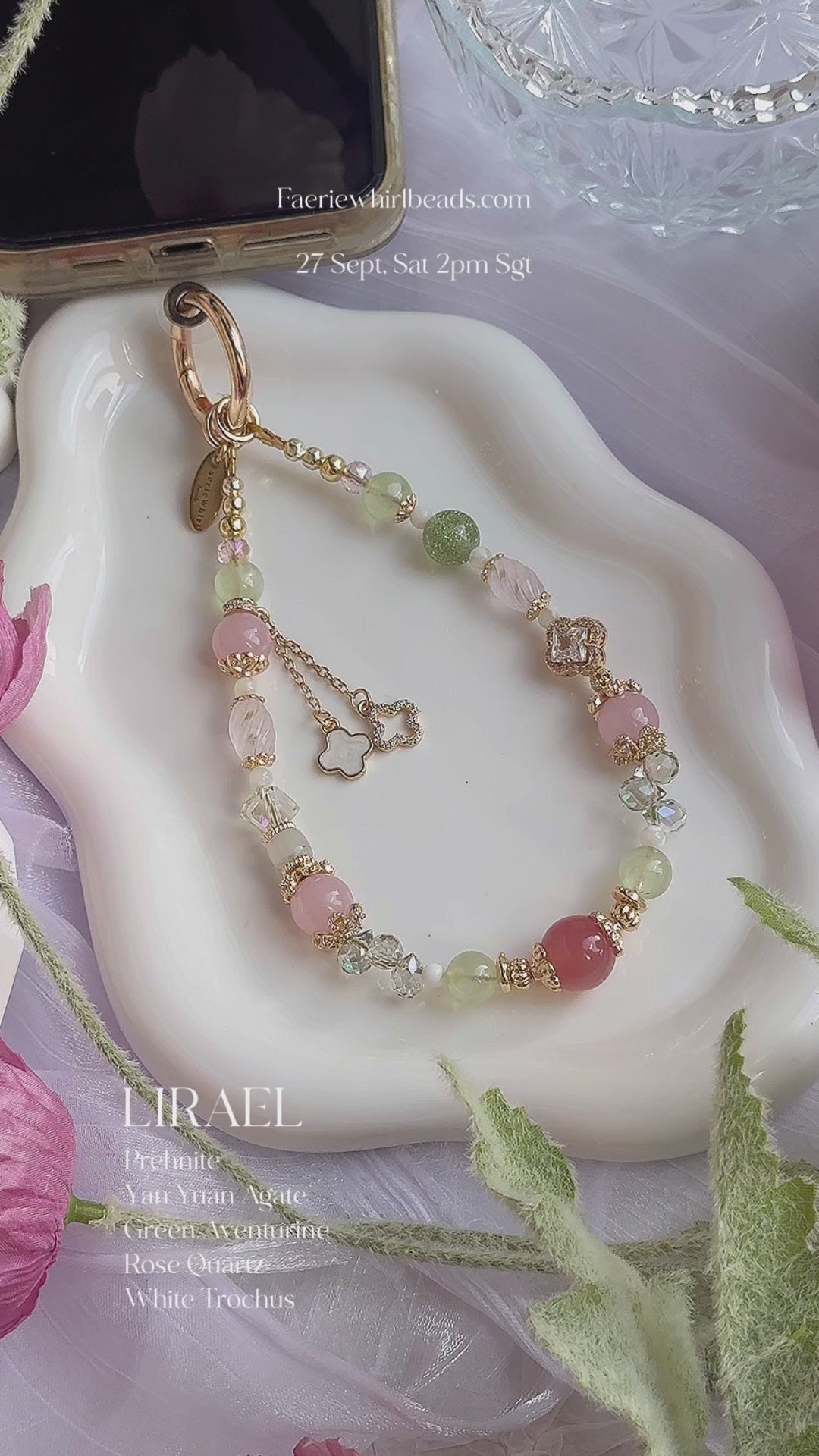 LIRAEL in Yan Yuan Agate, Rose Quartz, Prehnite, Green Aventurine, White Trochus