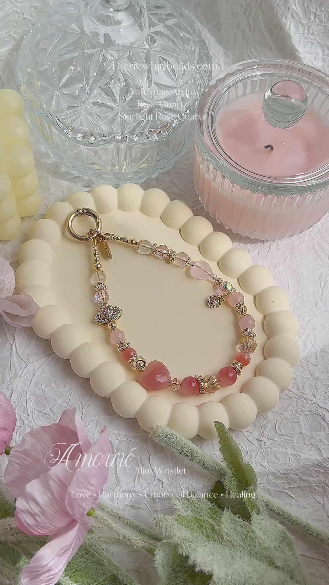 Combined Energy: When paired, these crystals create a powerful synergy of love, tranquility, and emotional balance, helping the wearer nurture both self-love and harmonious connections with others. The Amore mini wristlet is more than an accessory; it is a portable charm of serenity, affection, and radiant grace.