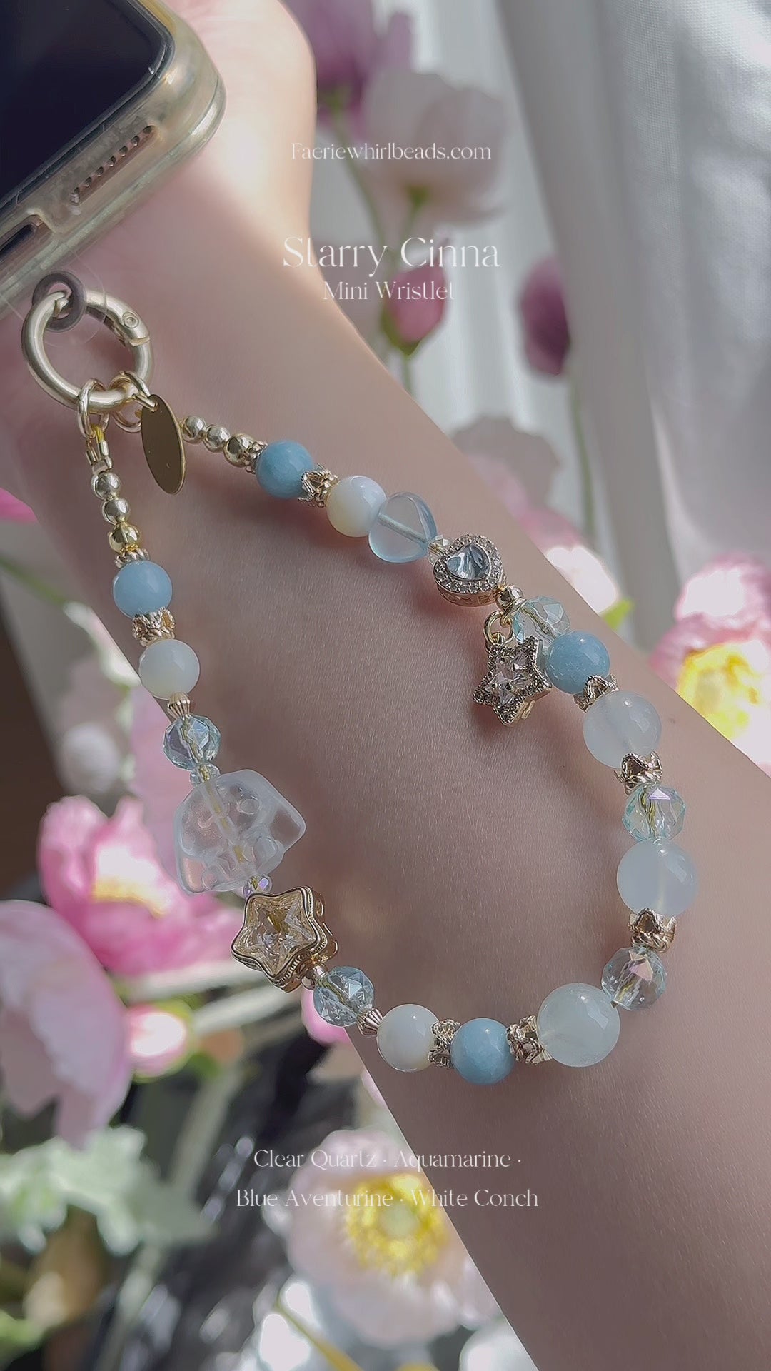 [Mini: 13.5cm] Starry Cinna in Clear Quartz, Aquamarine, Blue Aventurine & White Conch