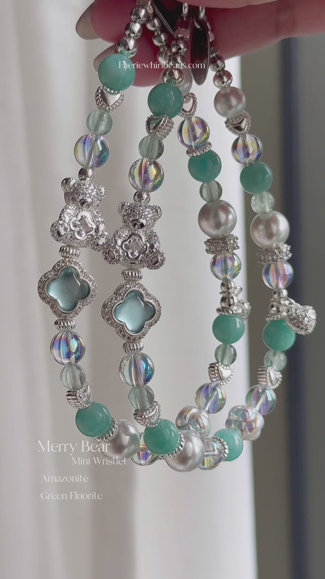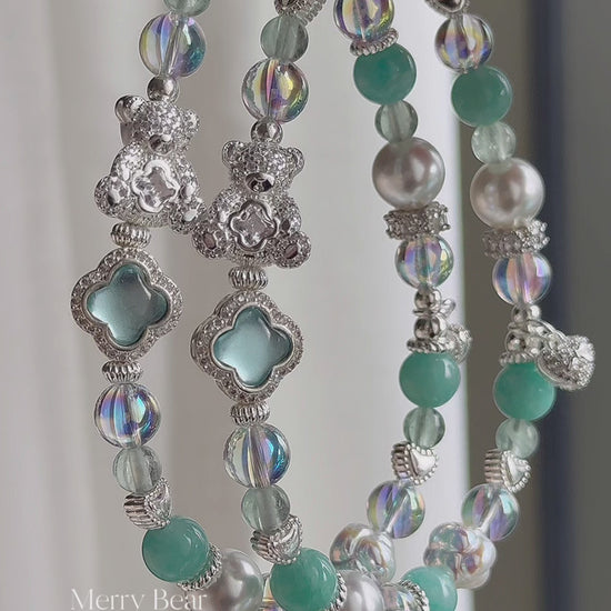 [Mini:13cm] Merry Bear in Amazonite, Green Fluorite & White Faux Pearl