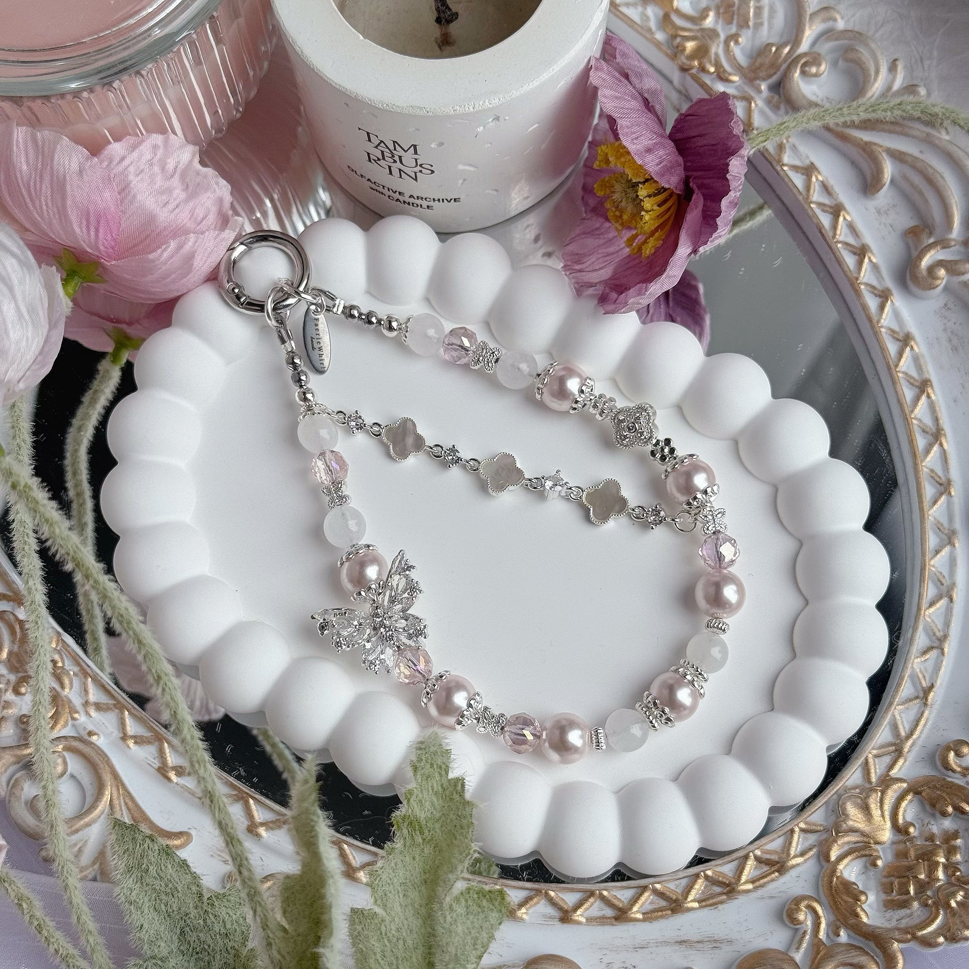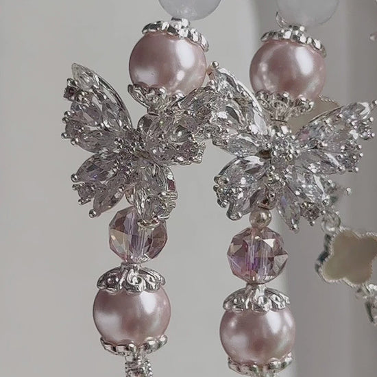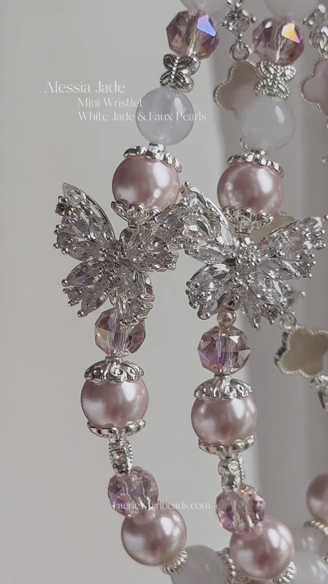 in White Jade, Pink Faux Pearl & Sliver-plated hardware.