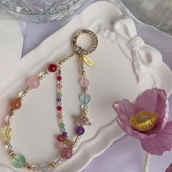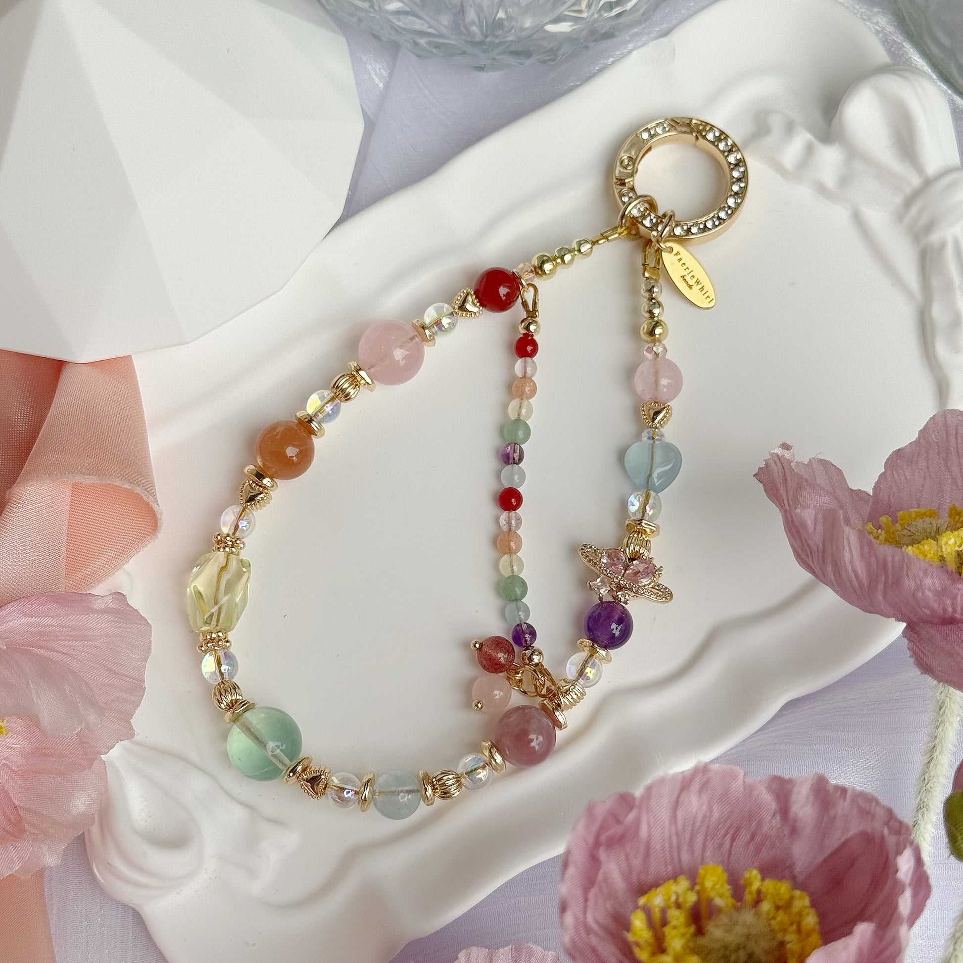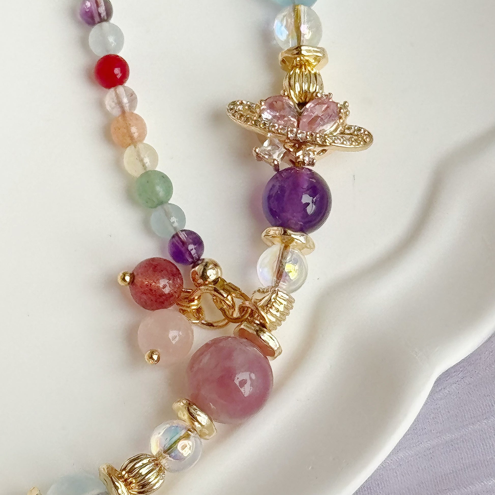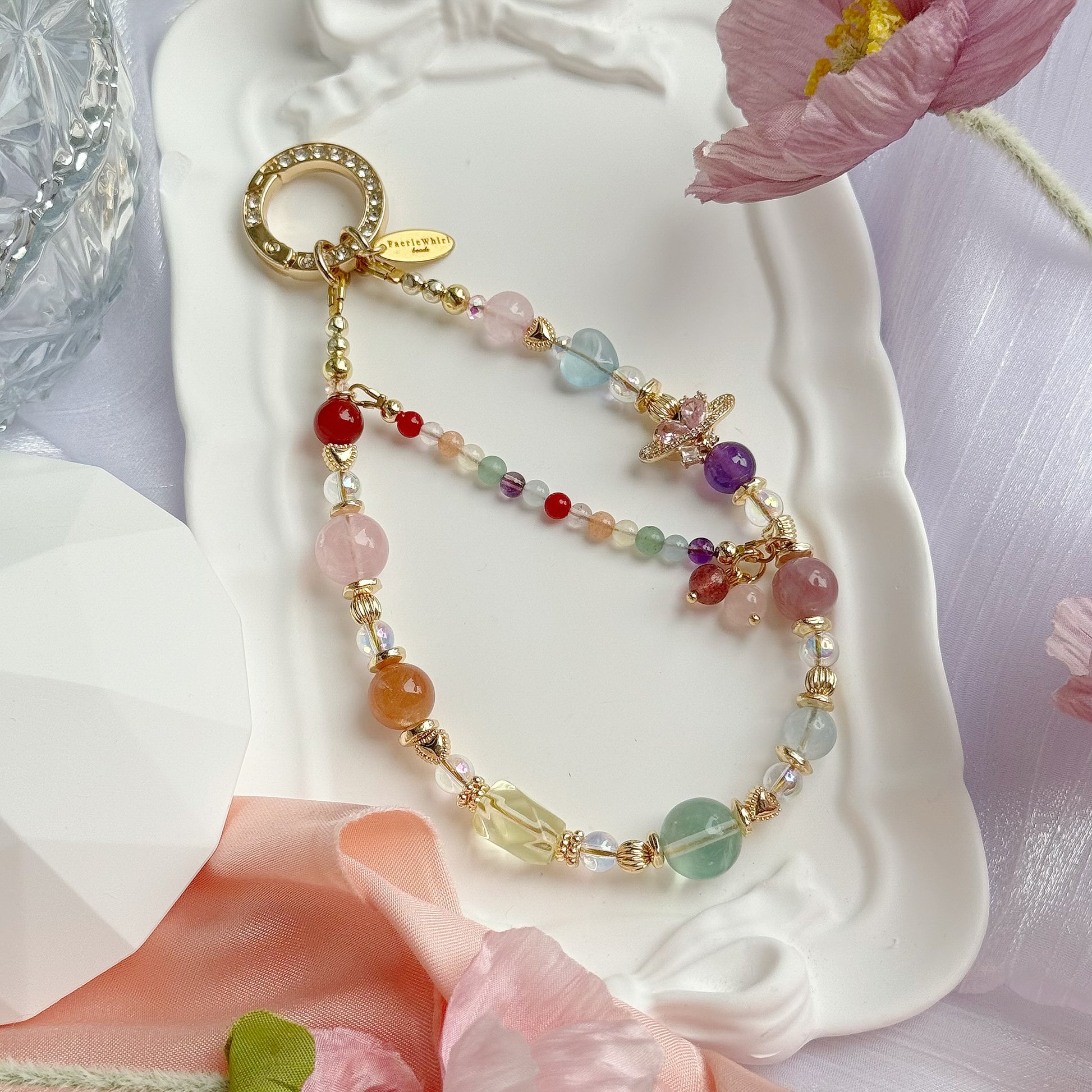 Together, these crystals create a harmonious blend of energies: Carnelian and Sunstone ignite passion and joy, Rose Quartz and Lavender Rose Quartz nurture love and emotional healing, Citrine and Lemon Citrine invite abundance and positivity, Green Fluorite and Aventurine promote balance and growth, Clear Aquamarine soothes and clarifies, Uruguay Amethyst calms the mind, and Strawberry Quartz brings gentle heart-centered energy. This vibrant combination supports emotional well-being, vitality, and spiritual connection, making Rainbow Cosmos a radiant charm for everyday empowerment and joyful expression.